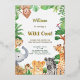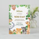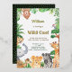 A cute gold foil jungle safari themed first Birthday (or any birthday invitation in watercolor depicting a wild tropical jungle scene complete with a collection of cute wild animals. This theme features wild animals and birds like elephant, cheetah, giraffe, zebra, monkey, toucan and ostrich framing the card. The 'Wild One' typography text in real gold foil with shadow effect can be personalised with your own text. The background colour can also be customised as per your requirement.