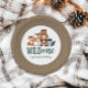 Wild One! Watercolor Woodland Animal Birthday with bear, fox, deer, racoon and trees and wood grain background.