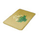 Bath mat in a digital illustration of a wild orchid plant, based on vintage botanical art, with flowers in shades of pastel to deep golden yellow, and dark green leaves, with a mustard gold background