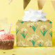 Wrapping paper in a digital illustration of a wild orchid plant, based on vintage botanical art, with flowers in shades of pastel to deep golden yellow, and dark green leaves, with a mustard gold background