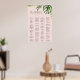 This wild palm blush alphabetical seating chart poster is perfect for a beach or destination wedding. This sign can be used to organise your guests alphabetically or by table number. The design features an exotic array of green watercolor banana palm tree leaves, ferns, foliage, botanical plants and greenery on a blush pink background for a tropical summer feel. This wedding poster includes enough room for up to about 120 guests. Make room for more (or less) guests by clicking the "customise" button and decrease or increase the size of the font. In addition to the placement of each guest, personalise this sign with the names of the bride and groom and the wedding date.