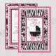 Boutique style zebra, damask, and dot print with hot pink accents and a baby carriage.