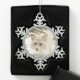 A lovely snowflake ornament portraying one of our Wild Paws residents, Coconut the leucistic red fox.