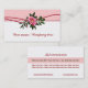 Wild pink rose floral business card, featuring a beautiful wild rose in pink with dark green leaves, red waved lines and halftone elements on white and light pink background. Elegant, unique design perfect for personal or professional use.