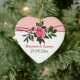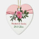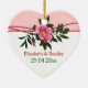 Wild pink rose floral wedding keepsake ornament, featuring a beautiful wild rose in pink with dark green leaves, red waved lines and halftone elements on white and light pink background. This floral, elegant and romantic design can be used for special occasions such as engagements, weddings, birthdays, anniversaries or Mother’s Day.