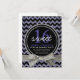 Invite friends and family to a special girl's sweet sixteenth birthday party with this funky purple zebra pattern invitation! Faux glitter style purple and solid black modern and trendy chevron zig zag print, accented with a pretty silver glittery style ribbon and bow, and double ringed circle with grey and purple text announcing a sweet 16. Four customizeable text areas for your party information. Several other coordinating products available in the store for a themed birthday celebration.