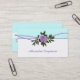 Wild purple rose light blue, white floral business card, featuring a beautiful wild rose in purple with dark green leaves, purple waved lines and halftone elements on white and light blue background. Elegant, unique design perfect for personal or professional use.