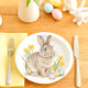 Wild Rabbit Easter Eggs and Daffodil Flowers Paper Plate