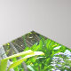 A unique capture of this wild rooster with so many colourful feathers, he stands beside beautiful greenery and flowering shrubs.