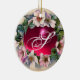 WILD ROSES WITH PINK FUCHSIA GEM STONE MONOGRAM CERAMIC TREE DECORATION