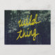Hand lettered type, “Wild Thing" layered over forest photograph.