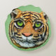 Wild Tiger Face on Green Round Pillow