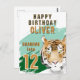 Wild Tiger Head Watercolor Birthday postcard. This personalized birthday postcard features a tiger graphic and bold 'ROARING INTO' text, alongside 'HAPPY BIRTHDAY'. Perfect for adding a wild touch to the special day. The vibrant design and custom name make it a standout choice for anyone who loves tigers and adventure.