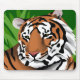 Wildlife art of a tiger portrait with green jungle foliage in backdrop