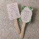 The fans are very pretty and easy to assemble. We utilized the original template and just inserted the names of our wedding party. After the product arrived we noted they read,”Made of Honor” rather than “Maid of Honor”. Upon re-checking the website we noticed the typo is in the original template and was not a mistake on our end. It is too late to return because our wedding is in just a few days but if we had time we would certainly request an exchange. See review above regarding typo.