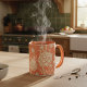 A coffee mug with the floral pattern Wild Tulip (1884) designed by William Morris (1834-1896), the British artist known for his wallpaper designs. Featuring wild tulip flowers that gracefully dance across the surface. The delicate petals and lush foliage showcase Morris's attention to detail and his commitment to bringing the beauty of the outdoors into everyday living spaces. The soothing peach backdrop adds a touch of warmth and sophistication, creating a harmonious balance with the floral motif.