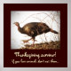 This poster features a young adult male wild turkey (Meleagris gallopavo silvestris). He has a red throat, neck and wattles and his feathers have areas of red, purple, green, copper, brown, bronze, and gold iridescence. This was the turkey species first encountered in the wild by the Puritans. Turkeys are a classic symbol of the Thanksgiving holiday season. The text reads: Thanksgiving survivor. If you love animals don't eat them. It can be customized or removed.