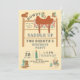 A "saddle up" cute and whimsical wild west cowboy first birthday invitation in terracotta browns and blues for a boy, with western gear cowboy gear and ranch animals. Saddle, steer, horses, cactus, saddle and lasso. Everything as cowboy needs. You can customise this for any age from 1 to around 8 years old, simply add the number in front of the word birthday.