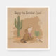 The Wild West Rustic Fun Cowboy Birthday Paper Napkin brings rugged charm to boys' birthday tables with bold cacti, a howling coyote, and a runaway roadrunner set in a dusty desert scene. The napkin's muted brown tones and customisable birthday message add a personal, rustic touch. Perfect as a wild west party napkin, it pairs effortlessly with cowboy-themed birthday supplies, making cleanup fun and on-theme.