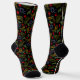 A Western Pair Of Crew Socks Designed In Blue, Green And Black. Patterned In Scarfs, Red Roses, Cowboy Hats, And Boots