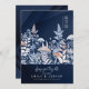 Set the tone for your celebration with this wild and whimsical Save the Date card, bursting with vibrant botanical charm. Delicate mushrooms, fern-like foliage, and bright florals in white, soft blue, and peach pop against a deep navy gradient background. The rich contrast and nature-inspired details strike a perfect balance between playful and modern—ideal for couples who want a fresh, floral-forward announcement with a touch of magic. Search ID1110 to see other products in this striking wedding design set. Note: design may contain generative content.