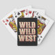 Retro style grunge "Wild Wild West" text design with striped letters in yellow, red and beige colours