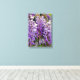 Vibrant blooms of wild wisteria burst from this canvas in vivid purples and greens. Artist's original photo.