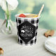 This beautiful Christmas paper cup features a buffalo plaid pattern in black and white topped by a black label and an optional text design of 'Wishing you a Warm, Wild, Wonderful Christmas'. A provided template allows you to easily add your name or other text. Search ID604 to see all the coordinating products for this design.