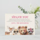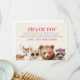 Woodland baby shower thank you featuring deer, fox, bear, and racoon with pink hair, sunglasses, and mohawk.