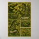 This intense retro comic-style illustration captures a dramatic jungle scene where a zebra narrowly escapes the deadly jaws of a crocodile amidst lurking hippos. With bold visuals and striking text like "CHOMP!" and "CROSS AT YOUR OWN RISK," this design evokes the peril and chaos of the wild. The vintage colour palette and hand-drawn look give it a nostalgic yet thrilling appeal for fans of wildlife, safari themes, or retro adventure art. Ideal for animal lovers, comic art collectors, and those drawn to dramatic nature illustrations.
