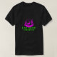 I give wanted to give this a 4 instead of a 5 because these Basic DARK T0shirts run unexpectedly SLIM or Narrow. Which is great if you do not have a potbelly, but I have a paunch. It isn't the shirt's fault that I've got a beer belly. The design and shirt itself is a quality cotton shirt. The color is more of a deep purple, but still a very pretty color. The Basic DARK T-shirts run a bit SLIMMER than the Basic Ts. The neck is a fraction narrower (or seems to be narrower) also. I'm a paunchy middle-aged woman and my neck is 12 inches (31cm) thick and the neckline fell about the same as in the photo of the man, and I had the desire to tug it a bit. So if you're a thick necked man or like loose shirts, be aware these are slimmer shirts. Once I get rid of my lockdown paunch it'll look great. The shirt washed well in cold water with no apparent bleeding. We don't have a dryer, so it hung dry. Did not shrink. Love the colors and the design. The design looks smaller on my shirt than it does on the model on-line. But still, it looks good on the shirt. The printing looks as it does on the model, just the size seems fractionally smaller. Washed garment in cold water, hung dry and design appeared unaffected.