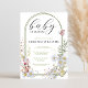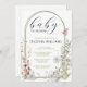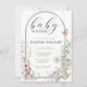 Spring Wildflowers Baby in Bloom Baby Shower Invitation. This pretty baby in bloom baby shower invitation features wildflowers and butterfly's on a green arch with pretty script and serif fonts.