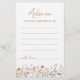 Capture the wisdom and well wishes of your loved ones with our delightful Wildflower Baby Shower Advice Parents to Be Card. Featuring a charming design adorned with delicate wildflowers, this card is the perfect way for guests to share their heartfelt advice and blessings with the soon-to-be parents.