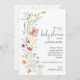Stylish gender-neutral baby shower invitations feature elegant watercolor wildflowers and your details in chic lettering on the front and registry, diaper raffle and books for baby information on the back. MATCHING items in our collection.
