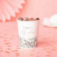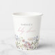 This wildflower themed paper cup features watercolor floral graphics, a blush, blue, lilac, yellow and green colour palette and a modern font. It is perfect for a "baby in bloom" or wildflower themed baby shower and you can pair it with anything in the ELODIE collection for a cohesive look.