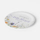 This design features a colourful border of watercolor wildflowers in shades of purple, gold, green, and blue.