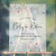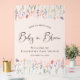 Elegant frosted acrylic baby shower welcome sign featuring watercolors of delicate wildflowers and "Baby in Bloom" in a stylish contemporary script. Personalise with the name of the mummy-to-be and the shower date in simple typography.