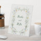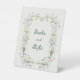 Wildflower “Books and Gifts” table sign featuring a soft botanical wreath design, ideal for baby shower events and floral-themed celebrations. This elegant table sign pairs beautifully with garden, spring, and “Baby in Bloom” style décor, helping create a cohesive and stylish event setup.
