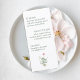 Subtle floral accents frame the menu without overwhelming the design, allowing your carefully curated selections to shine. Perfect for garden weddings, outdoor celebrations, and classic romantic themes, this menu card adds a sophisticated finishing touch to your place settings.