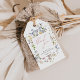 This wildflower bridal shower favour tag features watercolor meadow flower graphics in soft pink, blue, lilac, yellow and green tones and a modern font. It is perfect for a whimsical wildflower-themed bridal shower and you can pair it with anything in the ELODIE collection for a cohesive look.