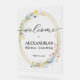 This bridal shower acrylic welcome sign features a beautiful wreath of watercolor wildflowers around a faux gold glitter wreath and your details in chic lettering. MATCHING items are available in our collection.