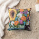 This 16" x 16" throw pillow features a Becky Schultea original acrylic floral painting, "Wildflower Bucket Bouquet" which includes a cheery sunflower,