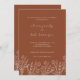 Elegant modern wildflower floral boho design in Burnt orange Terracotta front and back invitation for fall wedding. It offers a romantic look with handwritten script typography.