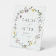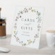 Wildflower Bridal Shower Signs: This elegant cards and gifts pedestal sign features a colorful wildflower design with soft watercolor flowers and refined floral details. Perfect for a garden bridal shower, the artwork highlights the phrase “love is in bloom,” creating a welcoming and polished look for your gift table. Designed to stand on its own, this sign adds an elegant floral accent while clearly guiding guests where to place cards and gifts.