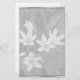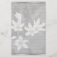 This photographic design features a black and white macro photo of a cluster of tiny wildflowers. There is a subtle hint of yellow in the centres of the blooms and a stripe of purple on the petal undersides. The leaves and foliage are in grey and black to keep the focus on the flowers. If you look really close, you'll see a surprise in one of the tiny blooms!