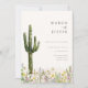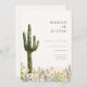 Rustic Desert Cactus and wildflowers Watercolor Scene, Wedding Invitation.