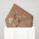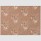This tissue paper features warm terracotta background and a half drop repeat patten that also provides 6 complete images for decoupage uses. Rustic, elegant artwork of warm fall dried flowers, botanical butterflies and muted neutral toned leaf foliage that was hand painted in watercolor by internationally licensed artist and designer, Audrey Jeanne Roberts and layered over a script handwriting and ephemera background. Copyright.