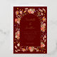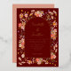 Wildflower arch burgundy terracotta and gold foil fall wedding invitation. This enchanting boho wedding invitation is a stunning blend of autumnal warmth and whimsical charm. Featuring hand-painted, watercolor wildflowers in a delightful wreath design, the invitation showcases a rich colour palette of burnt orange, brown, yellow, green, terracotta, coral, purple, and pink. The earthy tones create a perfect harmony, making it an ideal choice for a fall wedding. The elegant gold foil accents bring a touch of sophistication, while the whimsical script in gold foil adds a personal, bohemian flair to all your essential wedding details. Designed by the talented artist Catherine Sweetman, this unique invitation embodies the spirit of a cosy, intimate celebration in the heart of autumn. With easy-to-personalise templates, it offers a seamless way to convey your wedding information with style and artistry. The background in a rich burgundy adding a natural warmth, bringing the beautiful florals to life in a way that feels both fresh and timeless.
