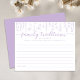 This Wildflower Family Traditions baby shower game card features soft lavender botanical artwork with lined space for guests to share cherished family traditions from their childhood.