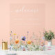 This design features a colourful border of watercolor wildflowers in shades of purple, gold, green, and blue.